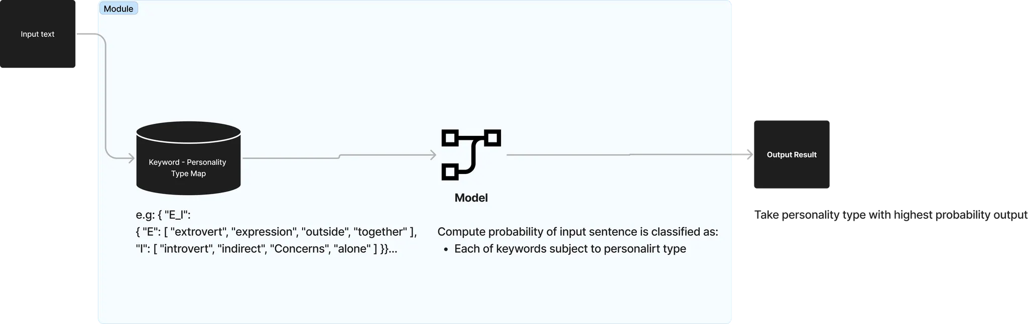 By using a zero-shot classification model, this project programs a pre-defined dictionary of relevant keywords for the 16 personality types and computes the probability of a sentence one speaks being relevant to each of the keywords.